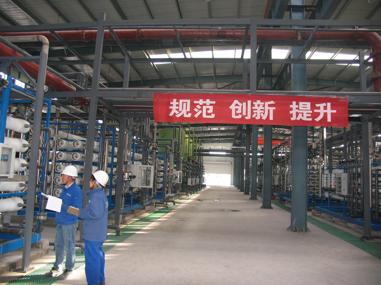項(xiàng)目進(jìn)水為園區(qū)電廠、PVC廠、化肥廠、冶金廠、電石廠、水泥廠等煤化工企業(yè)排放的工業(yè)高含鹽廢水。項(xiàng)目于2014年9月開(kāi)工建設(shè),2015年3月正式通水運(yùn)行,工期僅6個(gè)月。